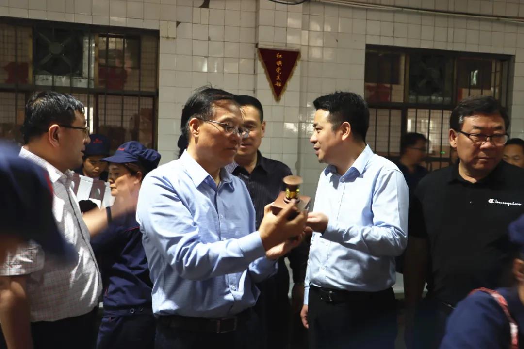 在生產(chǎn)一線(xiàn)調(diào)研的過(guò)程中,調(diào)研組一行品嘗了熱騰騰的原度酒。尚勛武副主席在細(xì)細(xì)品味了原度酒后說(shuō):沒(méi)想到皇臺(tái)的原度酒竟然有如此飽滿(mǎn)、醇香、純凈的口感,沒(méi)有絲毫的燥雜味。