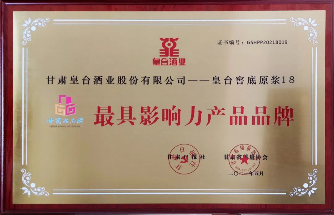 5月15日,皇臺(tái)窖底原漿18在第二屆甘肅品牌論壇會(huì)上,榮獲2021年甘肅好品牌“最具影響力產(chǎn)品品牌”榮譽(yù)稱號(hào)。