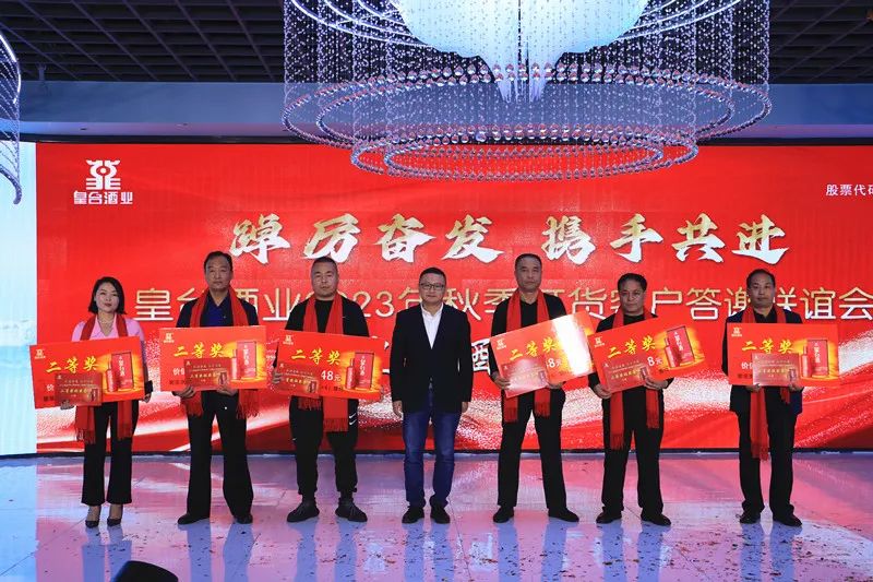 金秋十月盛世華夏,碩果累累美酒飄香。10月13日上午,皇臺(tái)酒業(yè)2023秋季訂貨客戶答謝會(huì)隆重召開。皇臺(tái)酒業(yè)董事、總經(jīng)理代繼陳,副總經(jīng)理、總工程師陳兵,副總經(jīng)理?xiàng)罾?,副總?jīng)理、營銷總監(jiān)張金道,財(cái)務(wù)總監(jiān)劉會(huì)平等公司領(lǐng)導(dǎo),以及商界嘉賓、三縣一區(qū)經(jīng)銷商朋友等共計(jì)1000多人,以酒為媒,共話發(fā)展。