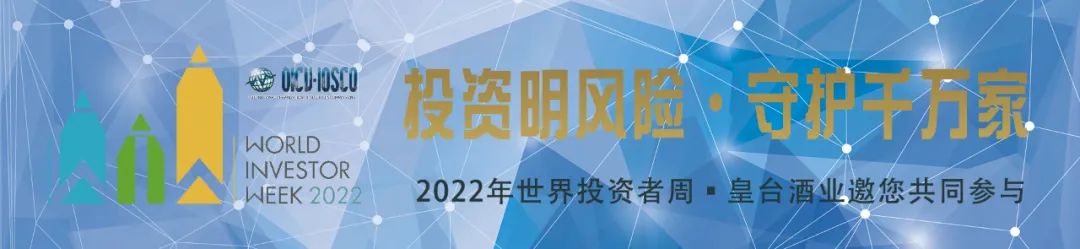 2022年10月8日-14日為“2022年世界投資者周”,本次活動(dòng)主題為“投資明風(fēng)險(xiǎn),守護(hù)千萬(wàn)家”。為貫徹落實(shí)監(jiān)管部門投資者保護(hù)工作的部署要求,加強(qiáng)投資者教育保護(hù)的國(guó)際交流合作,積極響應(yīng)“2022年世界投資者周”活動(dòng)號(hào)召,皇臺(tái)酒業(yè)在監(jiān)管部門的指導(dǎo)下,將以“投資明風(fēng)險(xiǎn),守護(hù)千萬(wàn)家”為主題,開(kāi)展投資者教育和保護(hù)宣傳,面向投資者做好證券基金期貨知識(shí)宣傳普及,引導(dǎo)投資者學(xué)習(xí)金融知識(shí),樹(shù)立正確投資理念!
